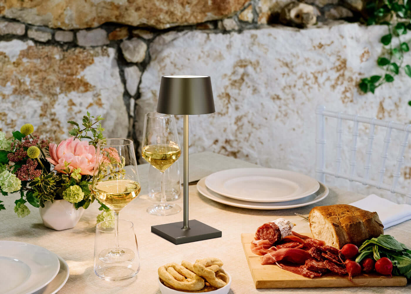 Das neue Modell Stilosa 3" - entworfen in Italien - hat eine optimierte Höhe, um die Gäste nicht zu stören (30 cm), und einen verbesserten Schirm, der mehr Licht auf weniger Raum bietet. Außerdem kann bei Stilosa 3 der Akku selbständig ausgetauscht werden. Diese Lampe ist mit einem einfach anzuschließenden reversiblen USB-C-Anschluss ausgestattet.