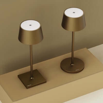 Stilosa is now available in different versions and color variations. It is a rechargeable table lamp-in two editions with a square base and a round base. But it is also a floor lamp (coming soon) and an atmosphere lamp (coming soon). In addition, the colors of Stilosa are repeated in the other Madrigal models to create continuity of colors and materials in one's environment.